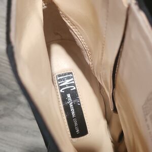 Inc Int'l Concepts Black Harpp Leather Booties, soft and supple leather and auede with gold trim on 3" booties. Great dressed up or down. Quality and classic.