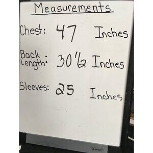 Chest: 47 inches, Back Length: 33 inches, Sleeves: 25 inches