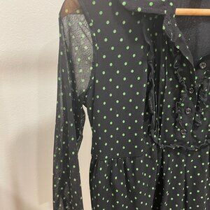 Inc Polka Dot Blouse Long Sheer Sleeves Ruffle Button Up Collared Babydoll Top