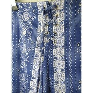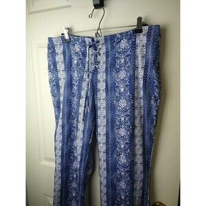 Inc stretch blue white floral striped side zip clasp close. Drawstring front tie tightened in good condition. Ankle straight leg.
