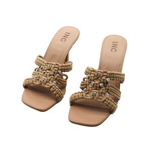 Inc Womens Black Comfort Ruched Birana Square Toe Stiletto Slip on Sandals