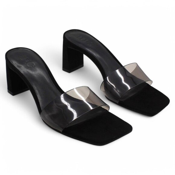 Inc Womens Black Comfort Slip Resistant Beyla Square Toe Block Heel Slip on Dress Heeled Sandals