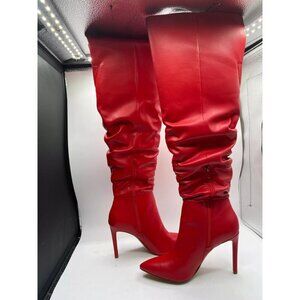 Inc Women's Iyonna Over the Knee Faux Leather Slouch Boots Red Size 5M