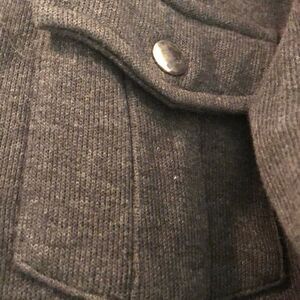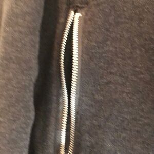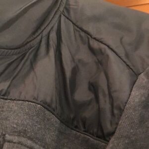 Inc zip up jacket it’s is black in the body and then a shiny black material around the shoulders and neck