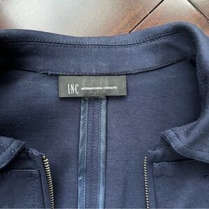 Navy button down jacket with silver hardware buttons. Unfortunate tags were cute off but it is a size small. I wanted to sell before giving away so just keep in mind the tags are all cut off.