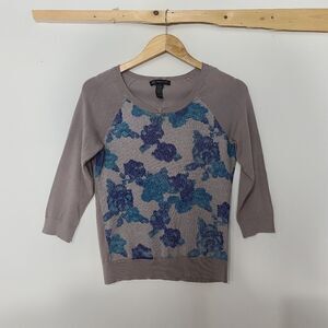 Inc gray shimmering floral women's sweater