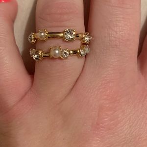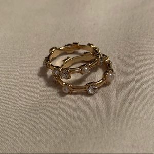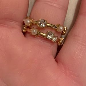 Inc set of rings from Macy’s. Paid $30 for both. Gold rings with pearls and rhinestones all the way around. They go with everything. Size 8. Very good condition. Can be worn together or separate.