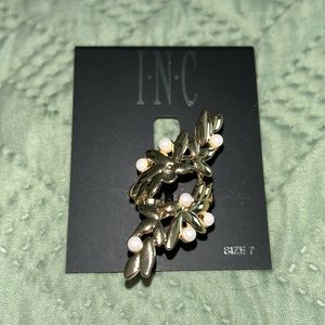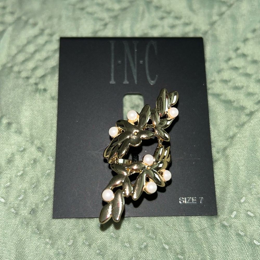Size 7, gold with white pearls. New