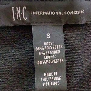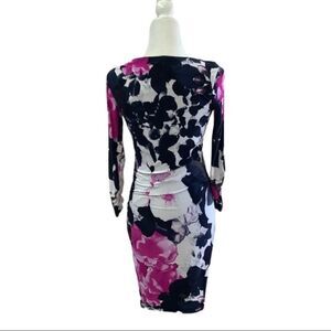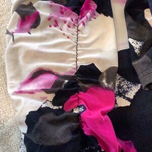 Inc Black -Pink-White-Blue Floral Midi Dress with elastic gather at wrist forarm.