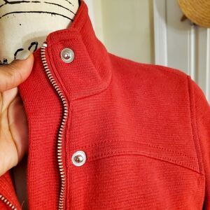 FLAW: ONE BUTTON ON THE FRONT HAS A TINY SCATCH