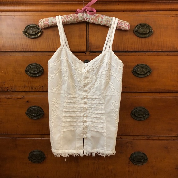 Fitted to perfection. Bright white & stunning design. Fabric is like a light denim. Top is discontinued and absolutely one-of-a-kind. I had one before I purchased this top, and got so many compliments on it. Totally wore it out! This one is NWOT - not my size anymore. Handmade in Peru ❤️ 100% high quality cotton ❤️