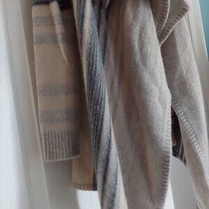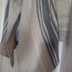 Incashmere Stripe Grey/Cream Stripe Open Front Cardigan M