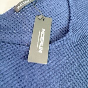 Incerun Sweater Mens 2XL Knitted Navy Blue Casual loose Pullover Jumper Tops New