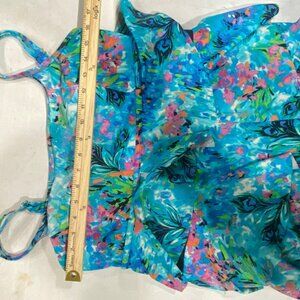 Inches Away Womens Size 12 Blue Tropical Tiered Swimsuit Dress Built-In Padded C