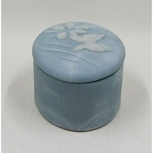 Incolay Blue Stone Marble Oval Trinket Jewelry Box Butterfly Iris Signed Nemeth