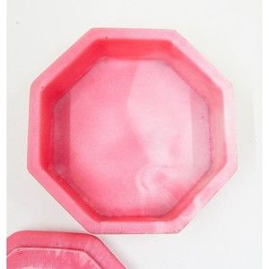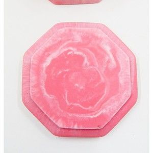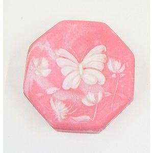 Incolay Pink Stone Butterfly Octagonal Trinket Vanity Dresser Box Signed Nemeth