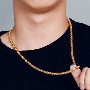 ⭐ Incredible 22" Round Box Chain 4mm Wide 18K Gold ⭐
