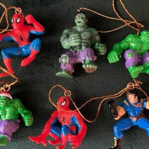 Marvel Incredible Hulk, Spiderman, X-Man Christmas Ornaments 2003 Miniature 1.5"
