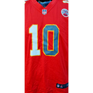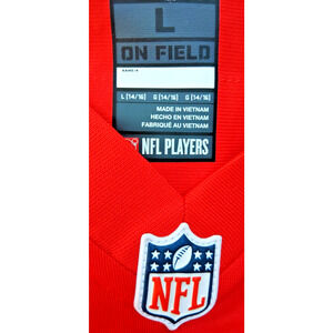 Show off your love for the Kansas City Chiefs with this incredible NFL on-field youth jersey. Made by Nike, this unisex children's jersey is perfect for any young fan of the National Football League. The jersey comes in a vibrant red color and features the team's logo on the front. It's perfect for game day or any day, and is sure to make any young fan feel like a true champion. The jersey is made in Vietnam and is available in size L. Don't miss out on this must-have piece of fan apparel for any young Kansas City Chiefs fan! This Jersey Does Contain Error/Errors. See front Jersey.