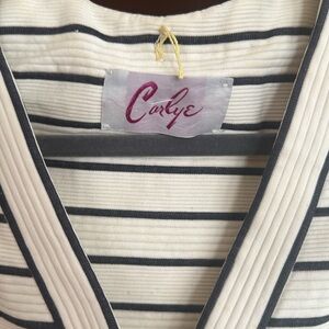 Wow wow wow this vintage dress has it alllllll. It’s so preppy tennis core. The stripes, the ribbed fabric, the v-neck, the dropped waist, the pleats!!!! No size tag but I’m a modern size 12 and it fits me snuggly.