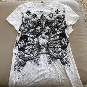 This is so cute! 100% cotton sz L but looks like a Medium! Long and lean style brand is Miss Match. Like new!