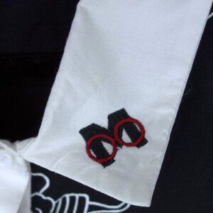 Black and white Edna Mode fitted button down. Very faint sweat stain above the tag, but in very excellent condition otherwise.