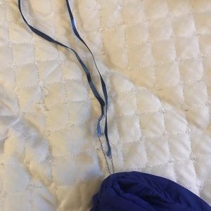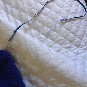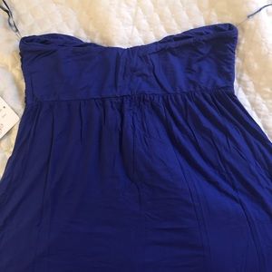 Strapless maxi. Straps on the inside used to put on hanger are shredded and coming apart. One side came apart. See photos for details. It’s actually not needed and is used to hang dress as an option.
