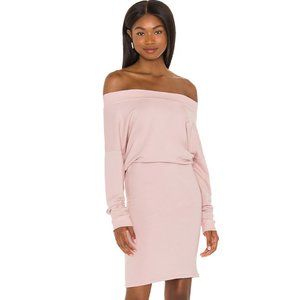 A mini dress with a boat neck, long sleeves and rib knit edges.