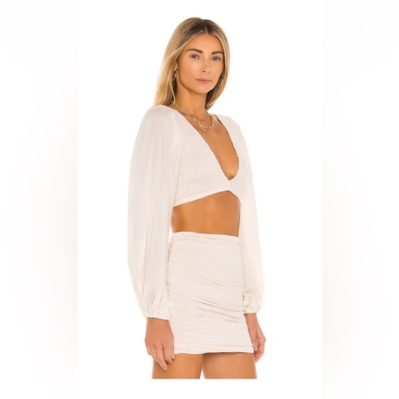 Indah Biru Solid Ruched Bodice Crop Top and