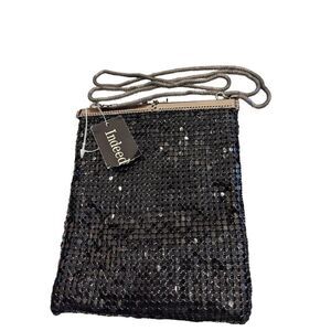 Elevate your evening attire with the Indeed Women's Black Metal Shiny Mesh Shoulder Strap Evening Bag. This brand-new-with-tags accessory features a dazzling black metal mesh design that exudes vintage-inspired glamour. The elegant shoulder strap ensures comfortable carrying, making it perfect for special occasions and nights out. Ideal for those who appreciate the fusion of classic charm and modern sophistication, this evening bag is a standout addition to any chic ensemble.