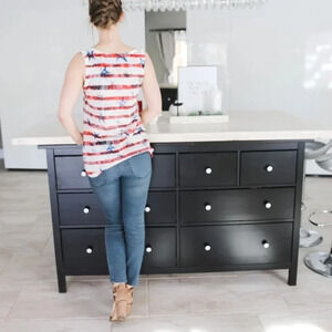Show your patriotism in this Stars and Stripes tank with a burnout effect- very slightly sheer.