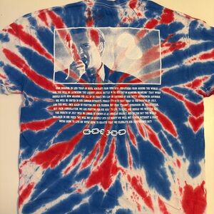Tie dye shirt for Independence Day with Bill Pullman’s full speech on the back. Worn and washed a few times but otherwise in great condition.