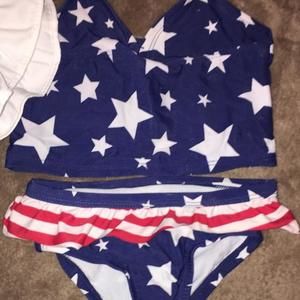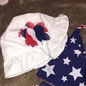 Independence swimsuit set with matching sun hat Swimsuit is size 6-9 & hat size small 6-12 months