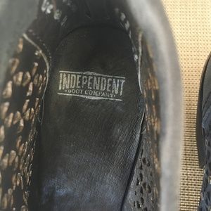 Awesome Independent Boot Company 'BURKE' Leather Ankle Boots, Sz 10.5. The leather came apart at one of the cutouts.. see 3rd photo.. not sure anyone would notice while wearing. Last photo shows them in a different color to see how they look on.