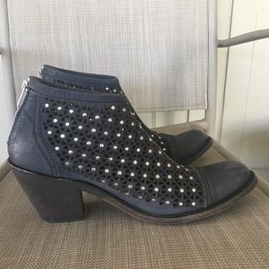 Independent Boot Company Leather Burke Cutout Studded Ankle Boots 10.5