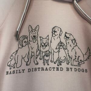 Independent Trading Co. "Easily Distracted By Dogs" Graphic Hoodie Medium Pale Pink Sweatshirt