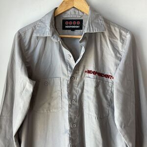 Independent Trucks GRINDSTONE Button Down Shirt Pale Gray Skater