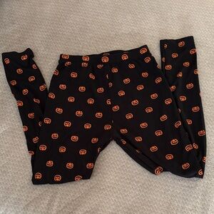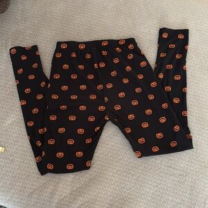Good condition with minor wear. See photos for details and measurements. No major flaws. These fun leggings feature a playful pumpkin pattern, perfect for Halloween festivities. The black and orange design adds a festive touch to any outfit. Size small/medium.