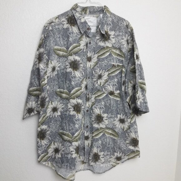 Index Men Button Down Hawaiian Shirt XL Flowers