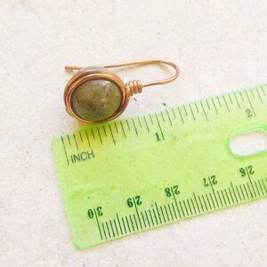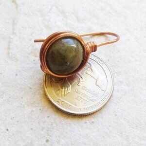 This is not a flashy, eye popping pair of earrings - more of a mature and classy elegance, rather than in your face beboppy and loud. These will appeal more to a mature woman, or a woman of any age, that is tapped into her inner core and in harmony with nature and the world around her. This pair of gorgeousness will go with any nature based clothing style, but would also be perfect to enhance a working wardrobe with understated chic. App 1.5" long from the top of the hand shaped earwires to the bottom of the wire wrapped Agate Stones. I wire wrapped these with bright copper jewelry wire.