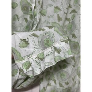 Authentic India Amory two-piece cotton pajama set. Handmade block print design in green floral pattern. Brand label present; care tag not attached (common for this brand’s small-batch production).