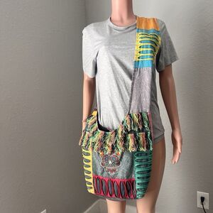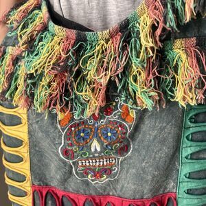 India Boutique Boho Shoulder crossbody satchel bag Skull Patchwork Fringe