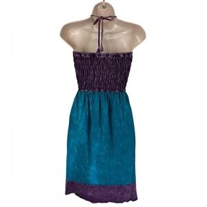 India Boutique Halter Smocked Mixed Media Artsy Textured Patchwork Tube Dress