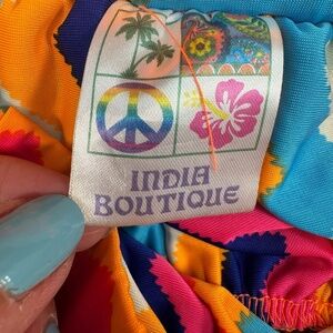 India Boutique Strapless Stretch Maxi Dress Womens One Sz Multicolored Tie Waist