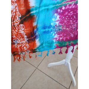 The India Boutique Women’s Coverup is a colorful and embroidered bohemian beachy coverup designed for women. Made from 100% rayon, this lightweight and breathable coverup features floral patterns, short sleeves, and a comfortable fit. Perfect for resort wear, beach outings, or vacation getaways, this one-size coverup is ideal for adding a stylish touch to your beach or poolside ensemble. Made in India, this coverup exudes a laid-back yet fashionable vibe, making it a versatile and trendy addition to any woman's wardrobe.
