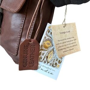 NWT Super Soft Supple Brown Leather Crossbody Bag. Unisex. Made in India. Light Brown with Dark Brown Accents and Pewter Color Hardware. W-7” x H-9” x D-2”. Flap Over with Snap Closure. Under Flap is Zip Around Closure. Opens to a fabric lined interior with 1 Zip Pocket and 1 Slip Pocket. Adjustable Cotton Canvas Crossbody Strap extends 26”-52”. Can also be worn as a shoulder bag with shortest strap drop of 13”. Exterior has a back sleeve with magnetic snap closure. All pics taken by Seller and show the exact item you will receive. Thanks for looking!