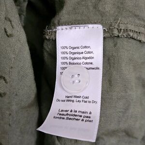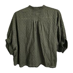 India Collection Emerson Fry Mandarin Collar Top OS Moss Organic Cotton Weave Blouse Short Puff Sleeve Relaxed