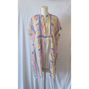 India Collection Emerson Fry Rainbow Stripe Organic Cotton Short Caftan One Size