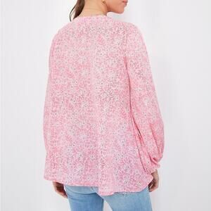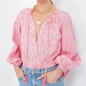 India Collection by Emerson Fry Crocus Bardot Pink Floral Balloon Sleeve Top S