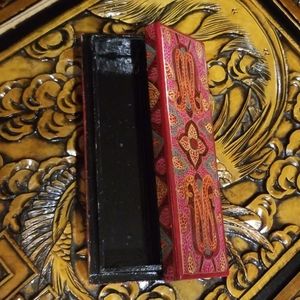 Indian design on light wood. Great desk piece for pencils, pens, or keyboard brush.